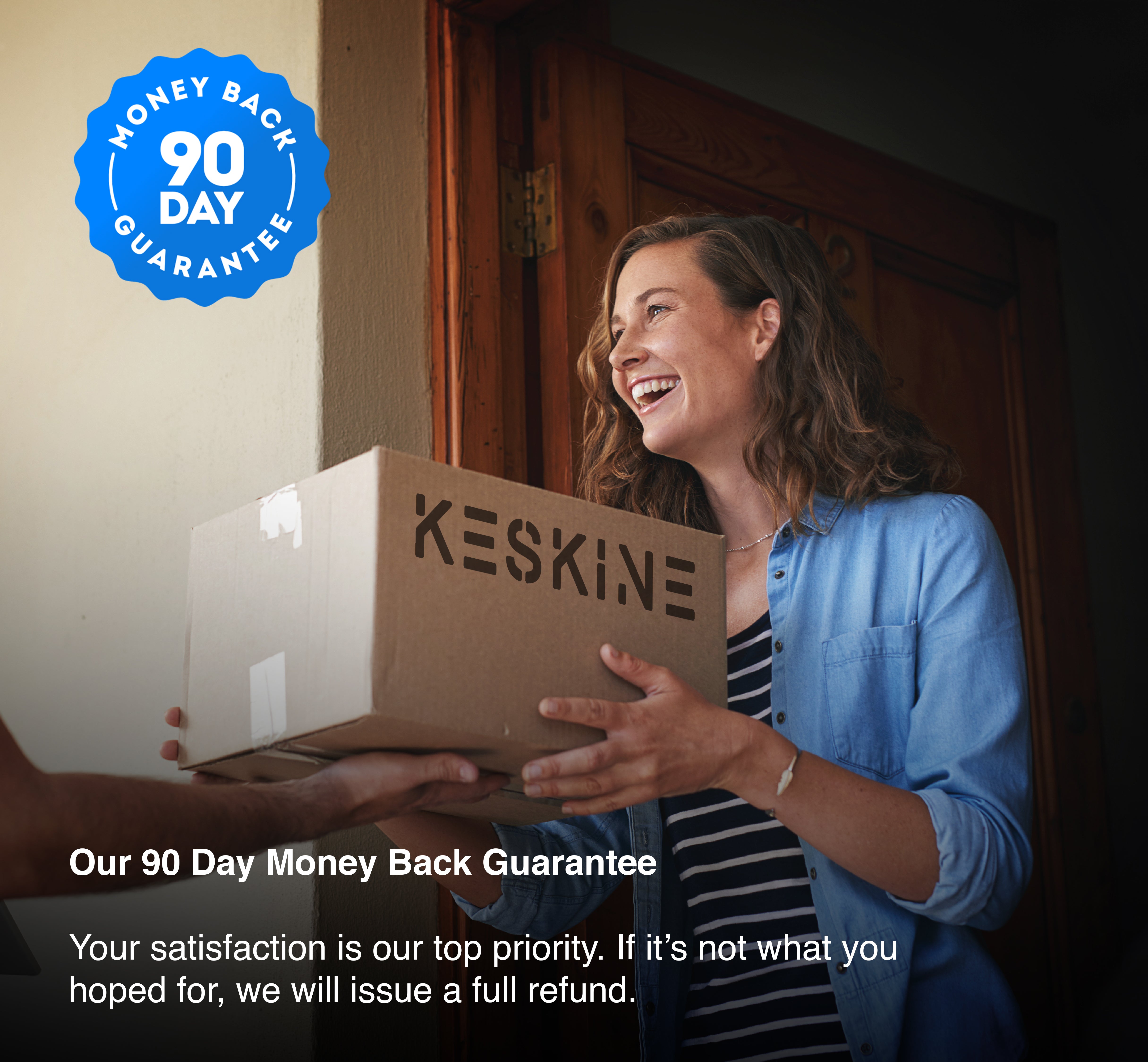 At Keskine, your satisfaction is our top priority. That's why we are proud to offer a 90-day money-back guarantee when you purchase our Keskine LED Eye Mask. If, within 90 days of your purchase from our official website, you are not satisfied with the product or the results, you may return it for a refund.